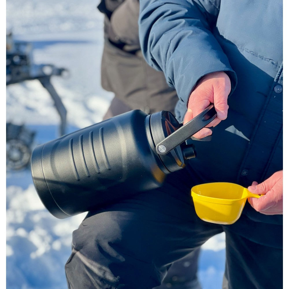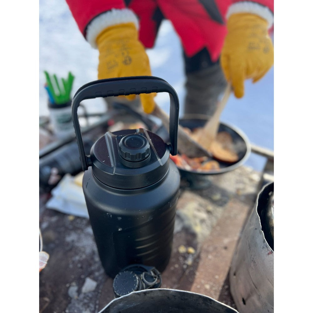 Täiuslik kaaslane grupireisideks, transportimiseks, hoiustamiseks ja igal juhul, kui vajad suuremat kogust vett, kohvi või teed, mis püsib tunde kuum või külm. Vastupidav Megajug (3,7 L) on valmistatud eriti vastupidavast, kvaliteetsest 18/8 roostevabast terasest ning sellel on kahekordse seinaga vaakumisoojustus, mis hoiab jooki kauem kuumana või külmana. Lai ava muudab täitmise ja puhastamise lihtsaks, samas kui suur isoleeritud kaas ergonoomilise, lekkekindla keeratava korgiga võimaldab mugavalt valada või juua. Kokkupandav kandekäepide ja libisemiskindel pind tagavad mugava transportimise – ükskõik kuhu seiklus sind viib. Suurepärane alternatiiv mitmele ühekordselt kasutatavale pudelile.
