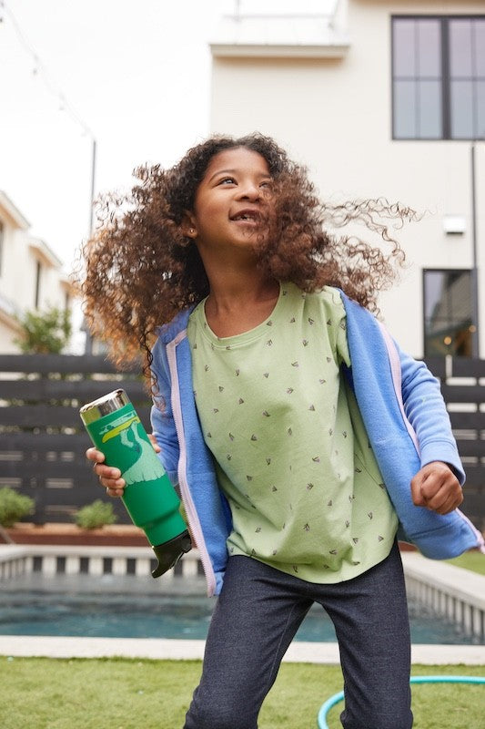 Insulated Kids’ Classic 355 ml vandens buteliukas sukurtas galvojant apie vaikus – saugus, praktiškas ir lengvai naudojamas. Pagamintas iš sertifikuoto 90 % po vartojimo perdirbto 18/8 nerūdijančio plieno, be BPA ir be švino, draugiškas aplinkai. Siauras profilis patogiai telpa mažose rankose ir lengvai įsistato į daugumą vežimėlių, automobilinių kėdučių ir kuprinių puodelių laikiklių.