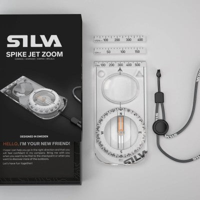 "Spike Jet Zoom" turi didelį didinamąjį stiklą, kad galėtumėte detaliau skaityti žemėlapį. Pasukamame korpuse yra 360° laipsnių gradacijos žymės, išplėstinės orientacinės linijos ir patogus suimti paviršius. Be to, pagrindo plokštelės gale yra nuimama skalė, todėl tai mūsų geriausiai orientavimosi sporto bazinės plokštelės kompasas.